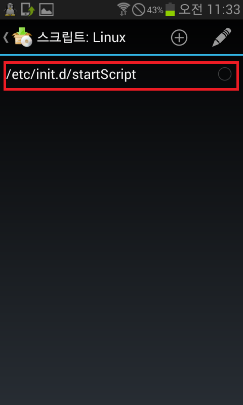 Linux Deploy에서 사용자 스크립트를 켜주고 스크립트 목록을 누른다.